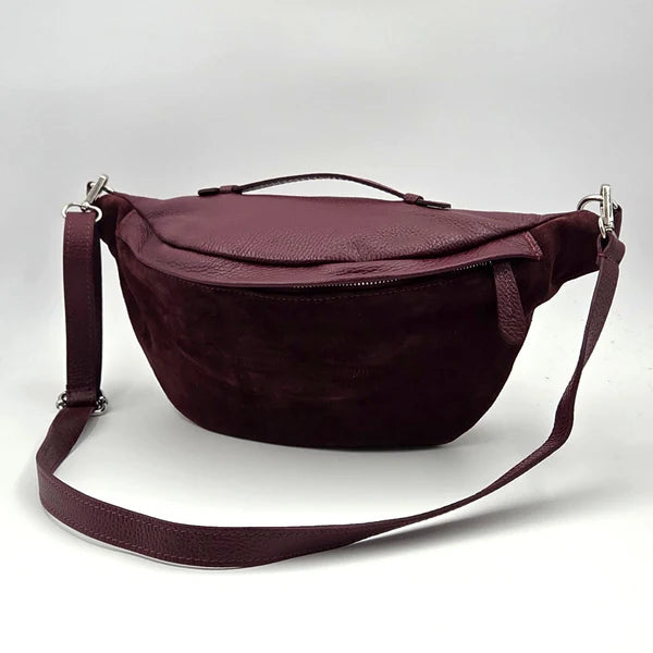 Bordeaux Leather and Suede Mix Large Crossbody Bag