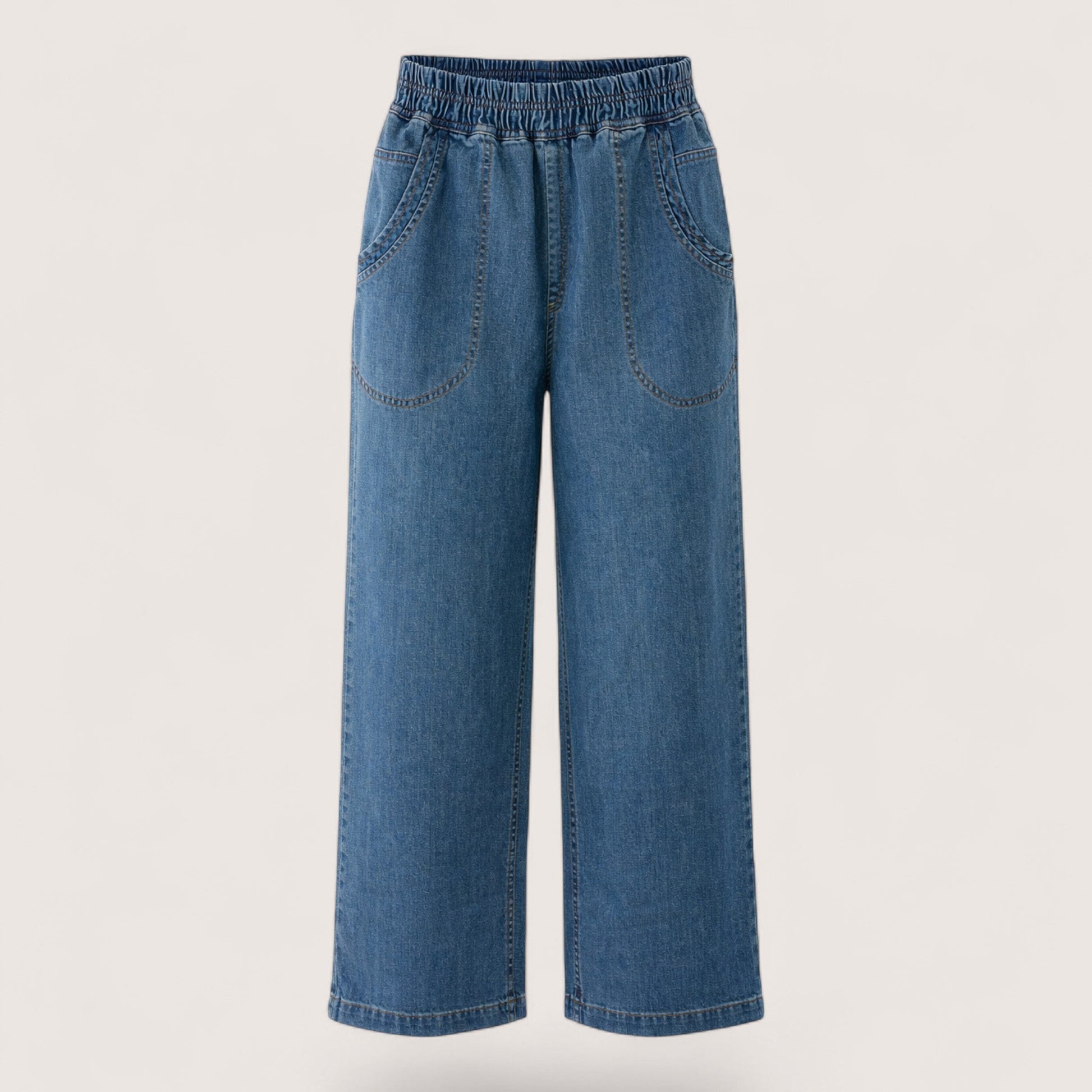 Denim Wide Leg Elastic Waist Cropped Jeans