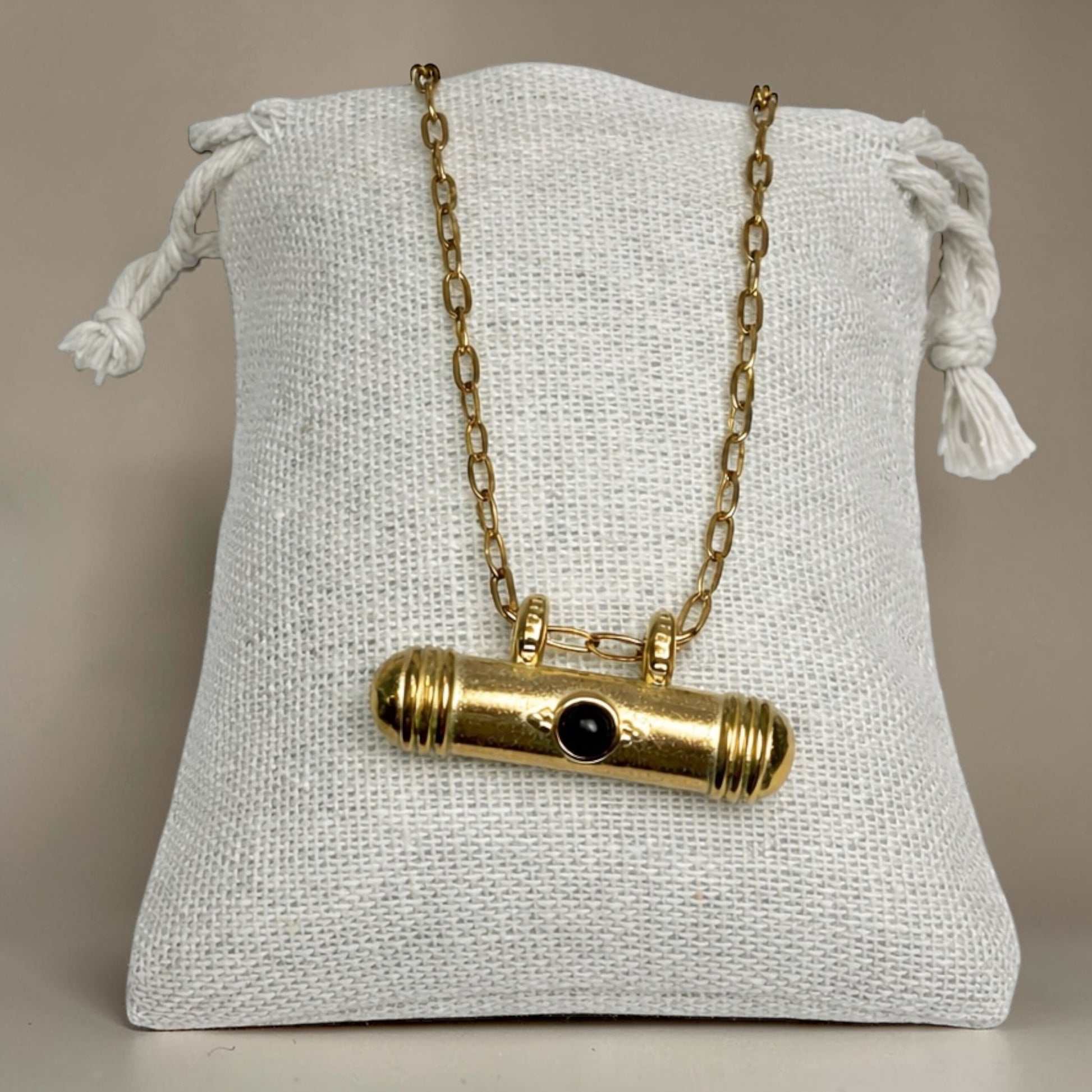 Gold Bar with Onyx Necklace